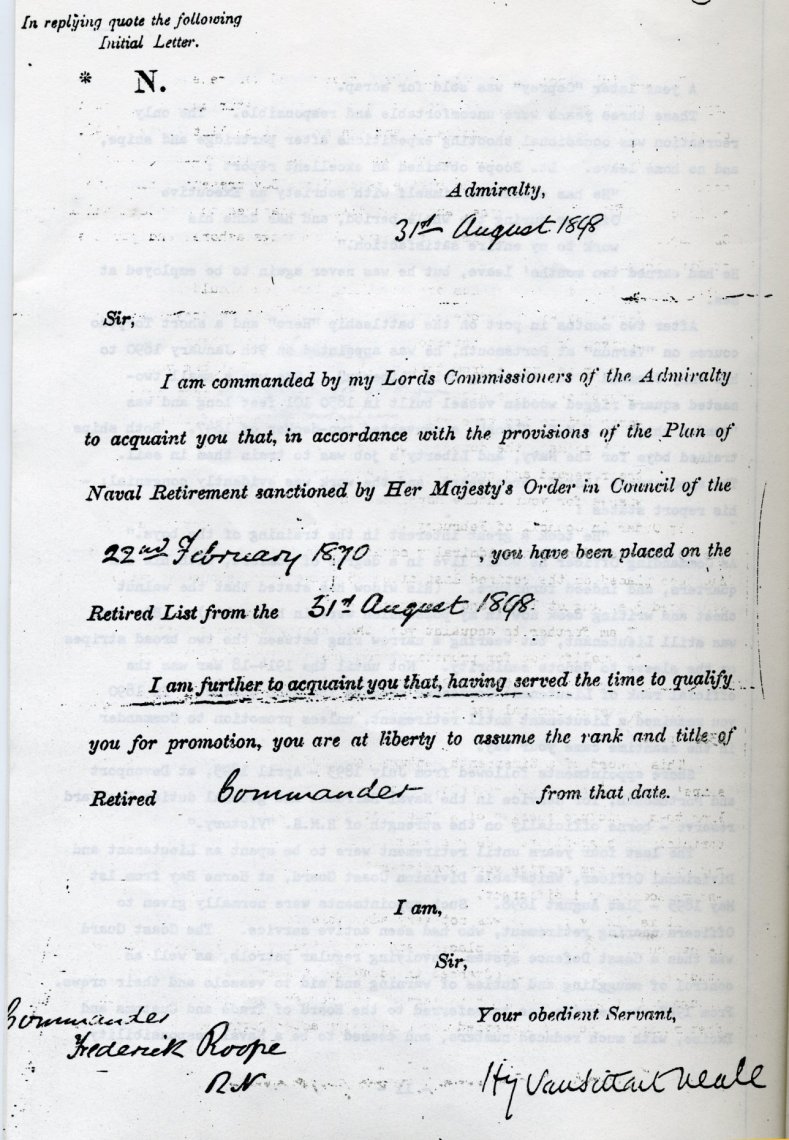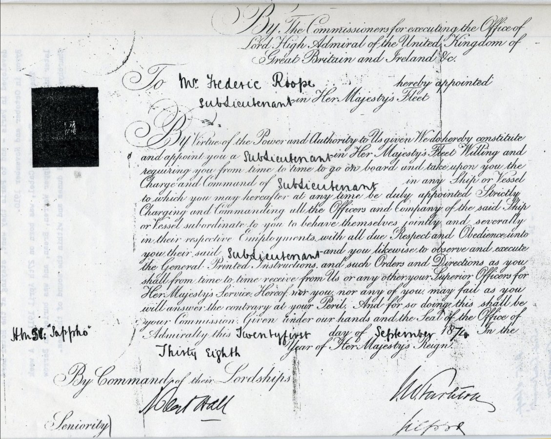 Sub-Lieutenant's Roope's Commission dated 21st September 1874