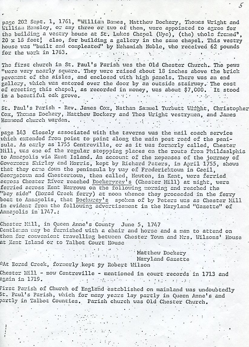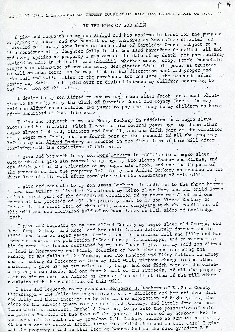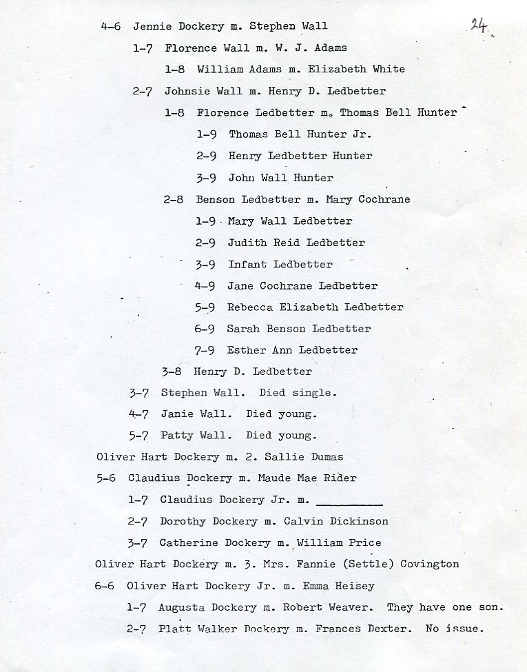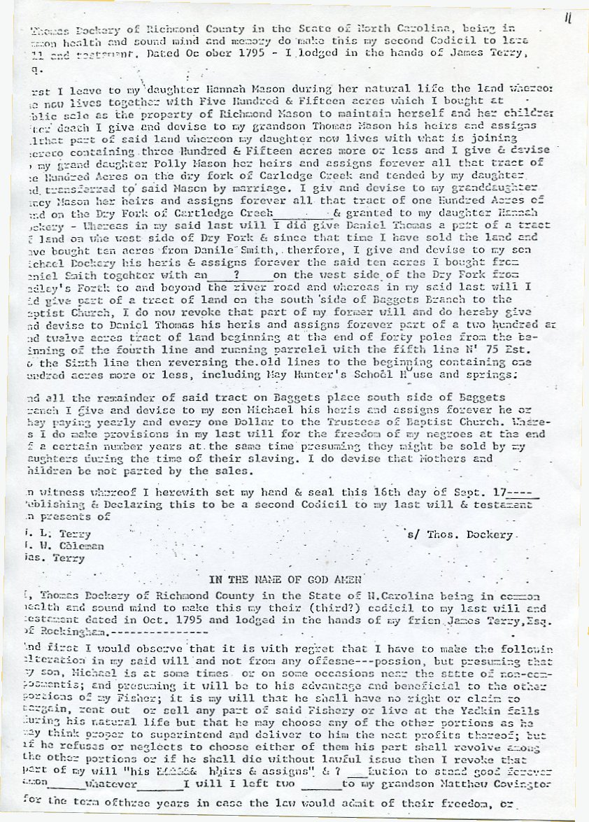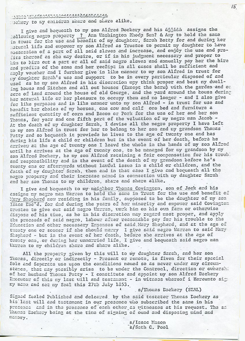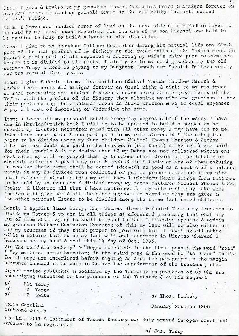 My father Bernard Frederick Rawes collected a mass of material on the Dockery family in the 1980s of which the following 31 numbered sheets is a small part. The sheets were probably numbered by my father and sheet six is either missing or numbered incorrectly. It is not now known where he acquired them, it is either from a member of the Dockery family or more likely a history society in North Carolina or Maryland.