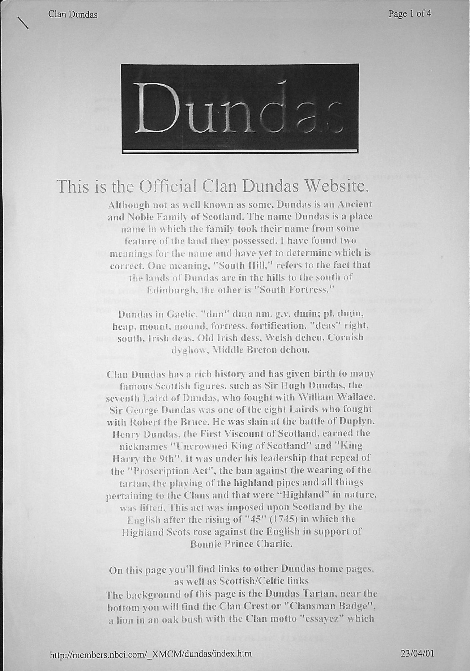 Dundas 19: - Dundas pedigree.