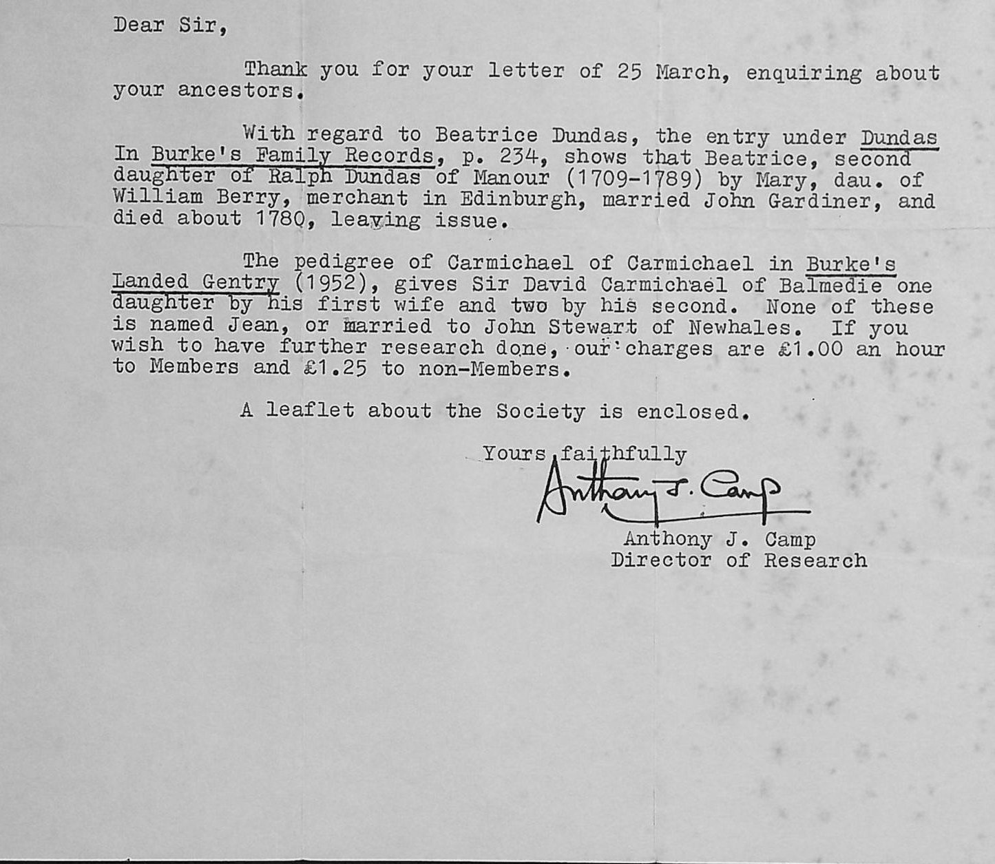 Dundas 04: - Letter from Anthony Camp.