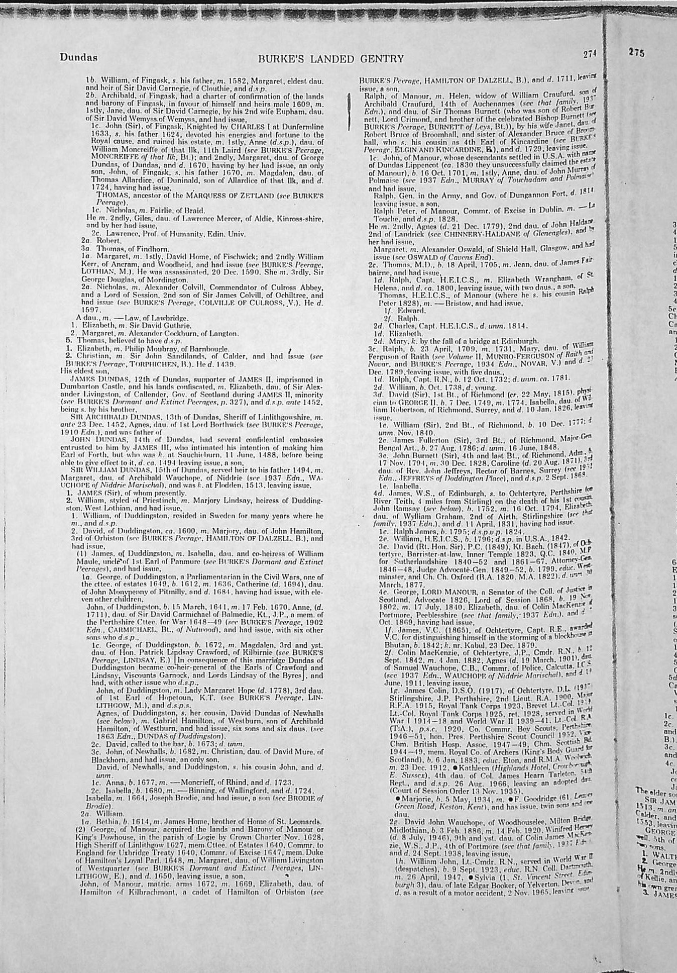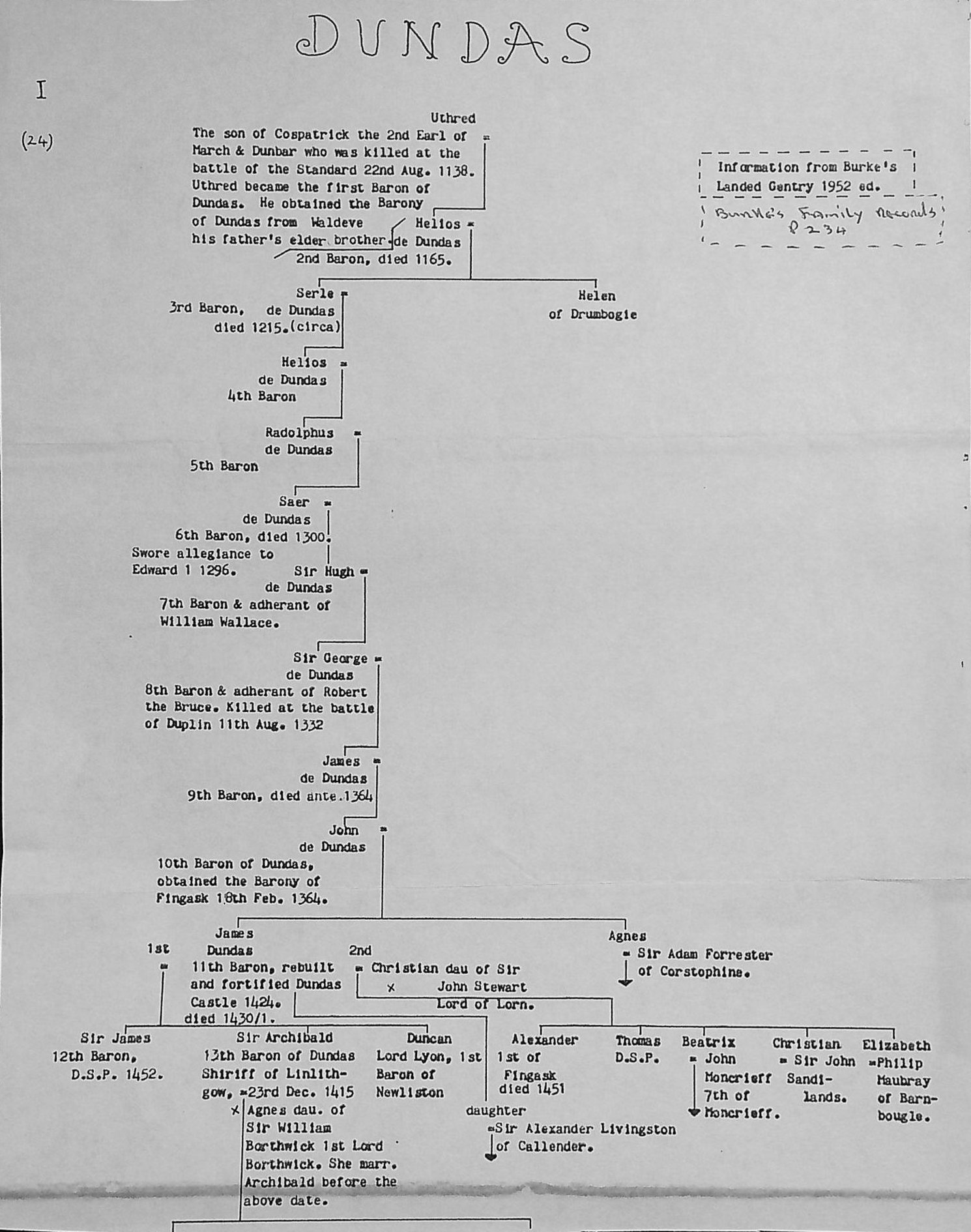 Dundas 25: - Dundas of Manour pedigree.