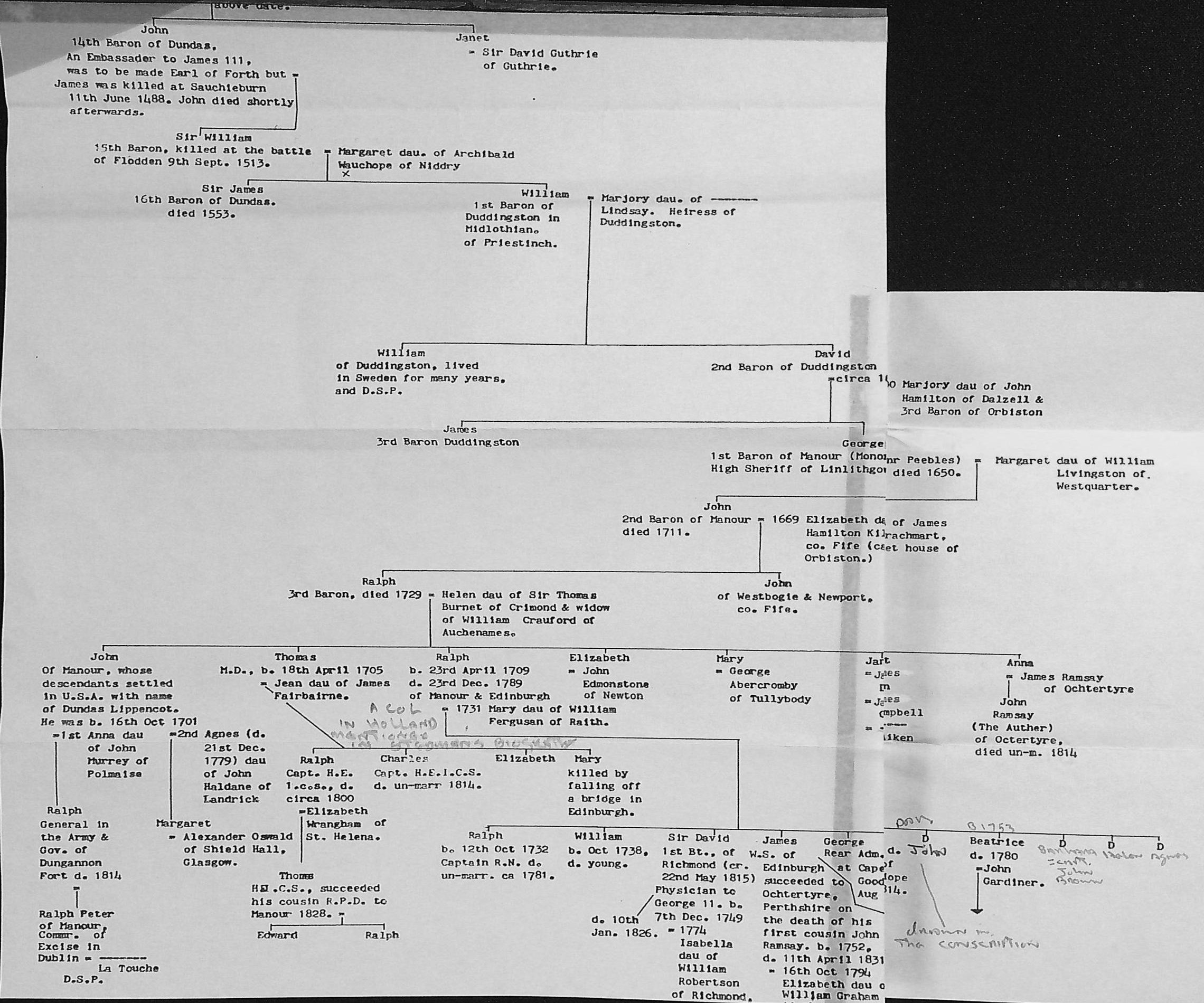 Dundas 30: - Dundas of Manour pedigree.