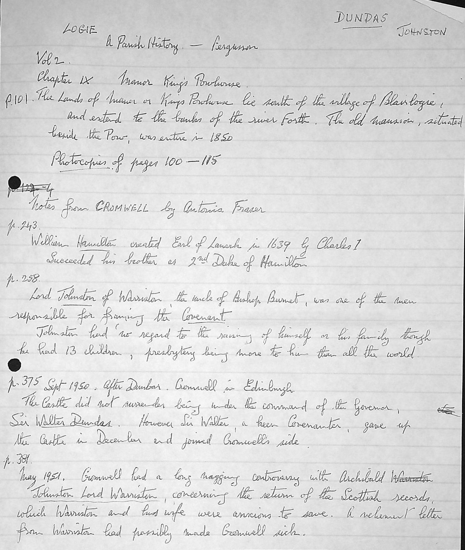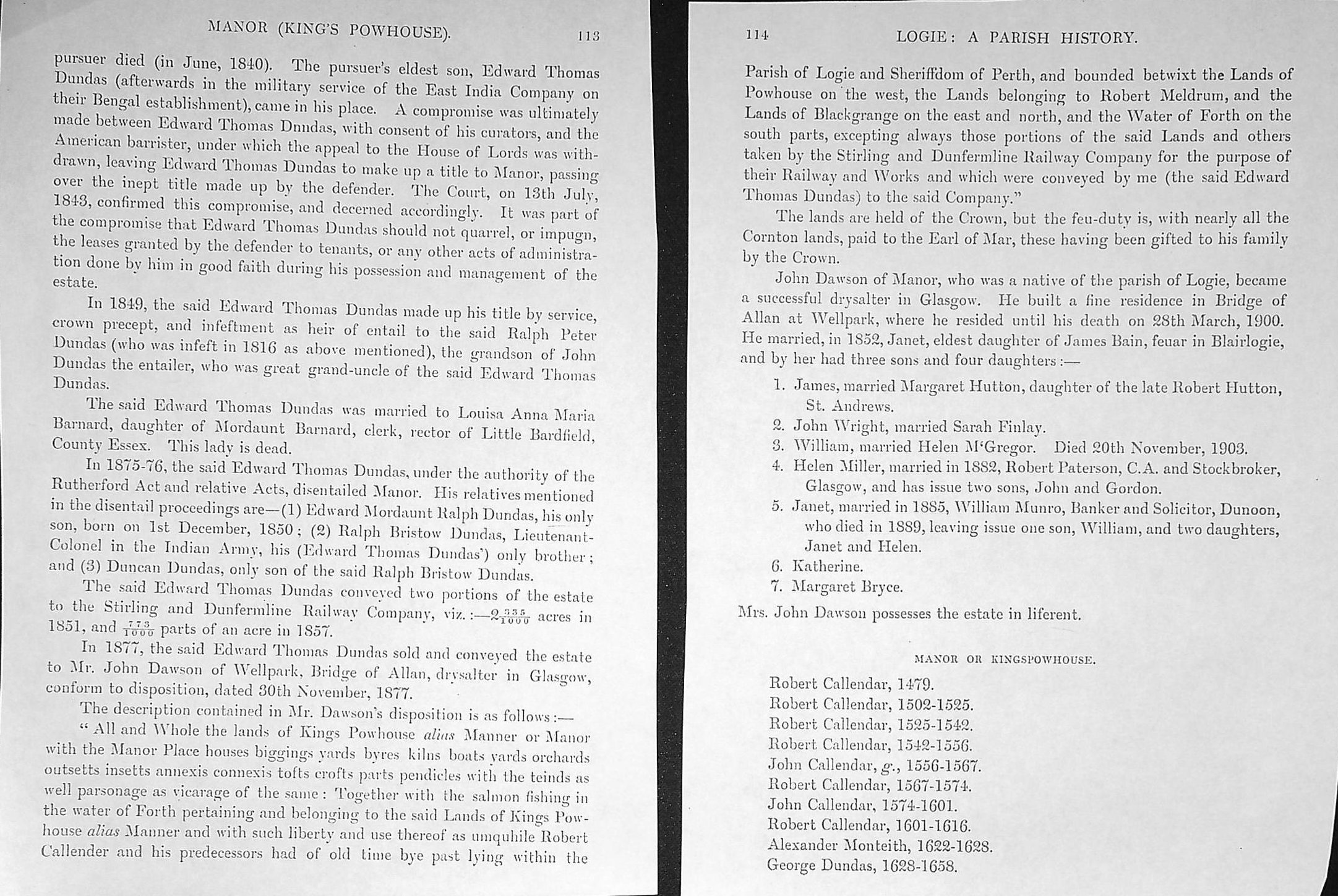 Dundas 24: - Mixed printed material on the Manor (King's Powhouse), Parish History of Logie, Aithway, and also Stirling.