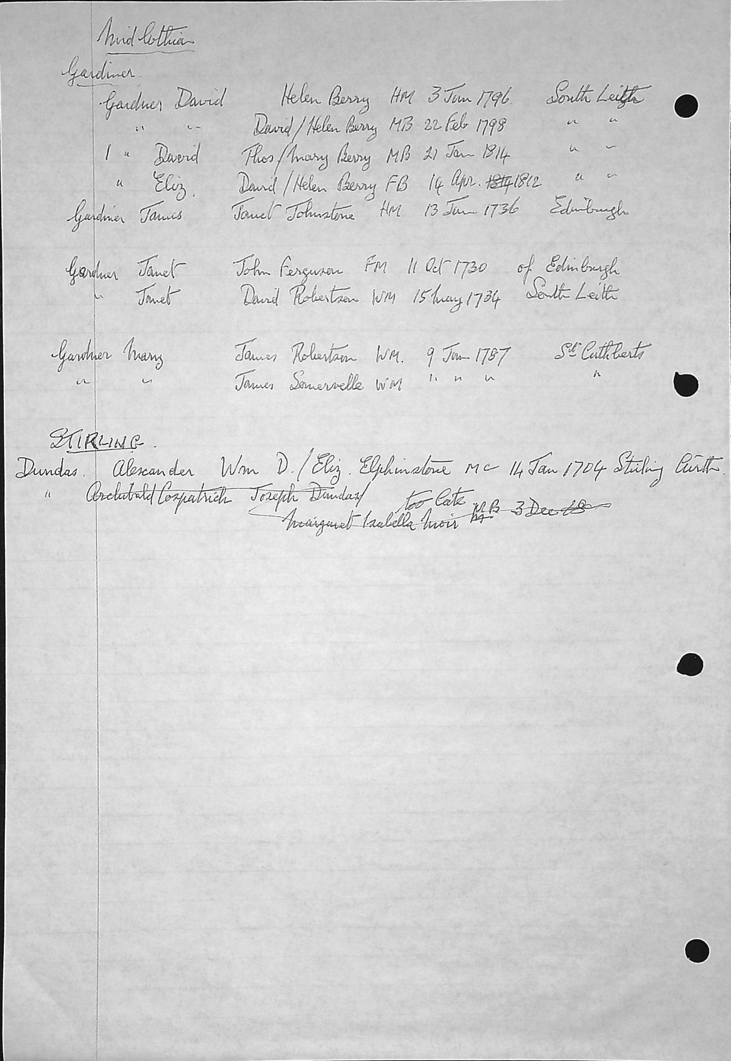 Dundas 20a: - Dundas/Glennie pedigree.