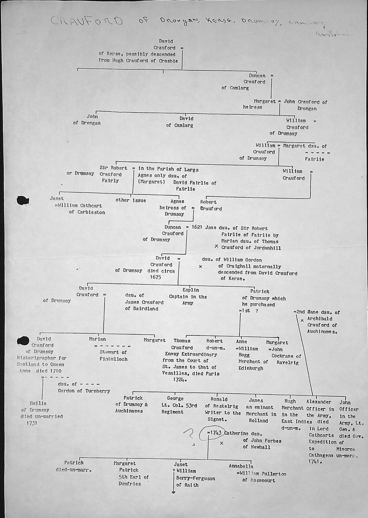 Dundas 31: - Crauford of Drongan, Kerse, Dromsoy, Camlarg.