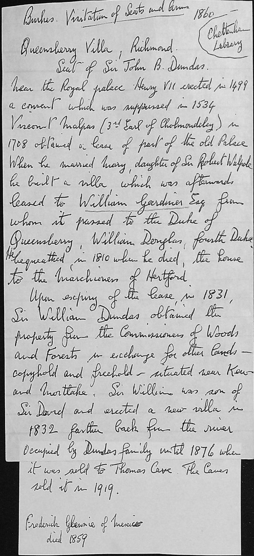 Dundas 42: - Photographs of Richmond Palace and Maria Dundas.