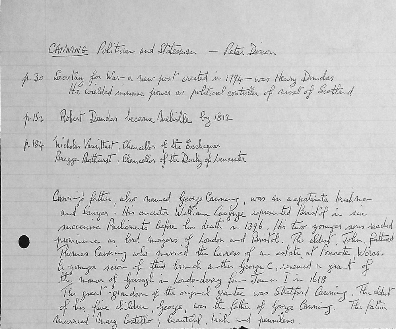 Dundas 39: - Printed sheets from 'Young Canning in Office'.