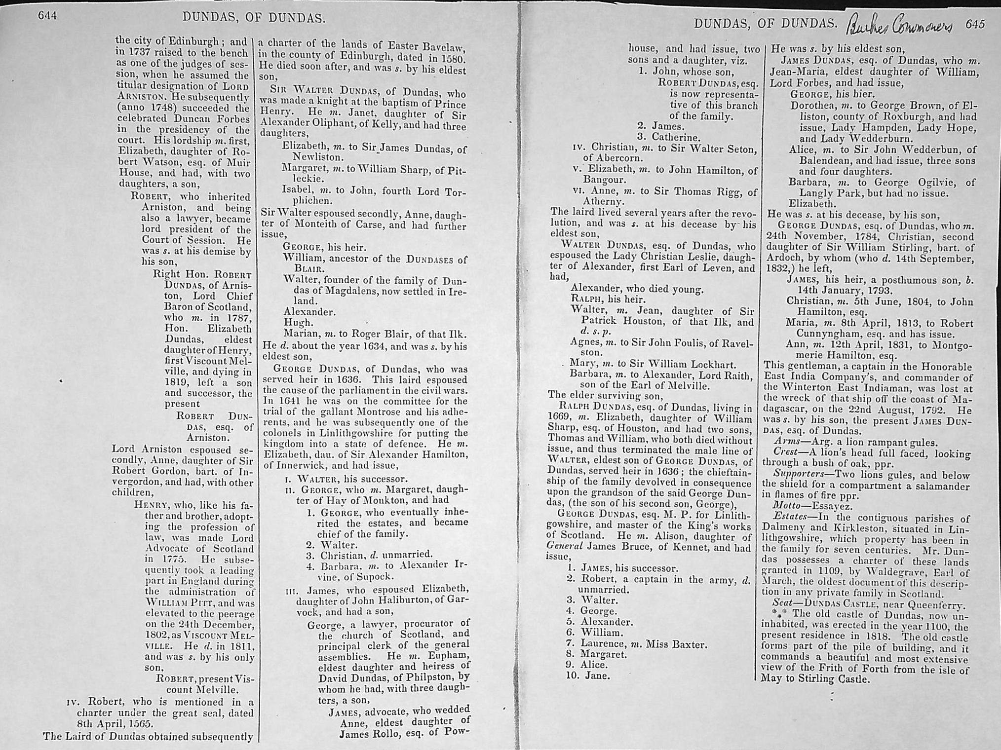 Dundas 37: - Burkes Visitation of Seats and Arms.