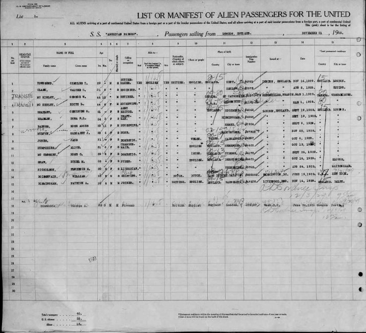 She arrived at New York on 3 Dec 1929. A description of Margaret Joyce and my mother is detailed on the Ancestry description of the document arrival and entry document but not on the actually image displayed:-