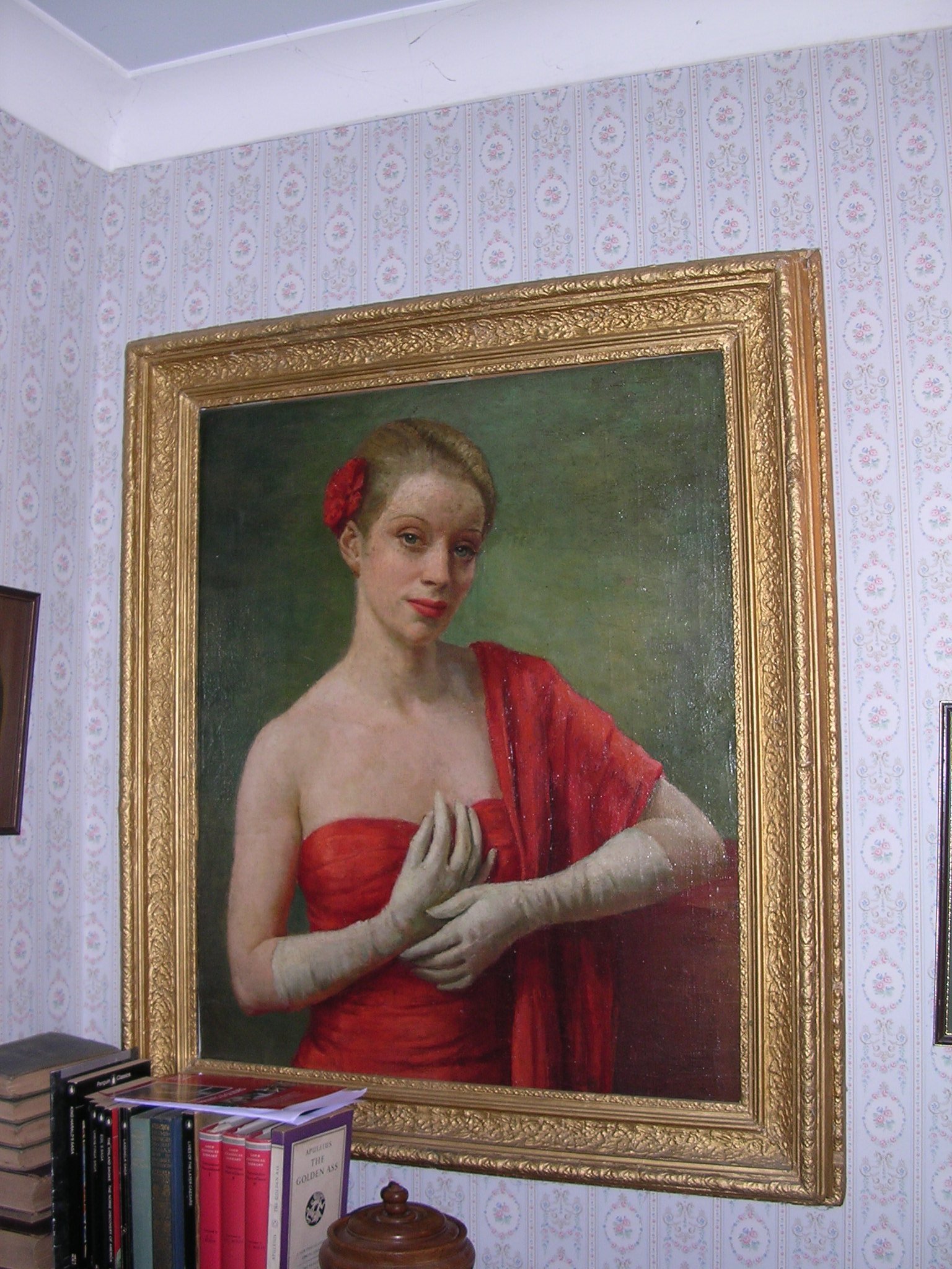 Many years later, just prior to my mother's death, I travelled up to London with her. She had tracked down the portrait which was still held by the late Arnold Mason's companion. We met the lady who was still custodian of many of Arnold Mason's paintings. The painting was rolled up and had never been oiled and we managed to purchase it. We subsequently had it restored and a fine framed was acquired. For reasons unknown the mirror in the painting had been erased.