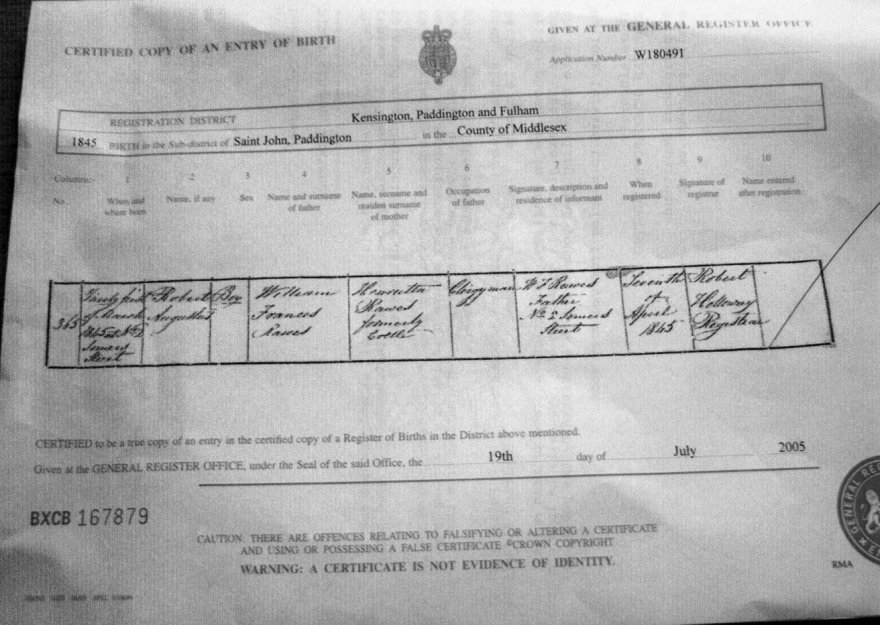 | Birth | 1845 | Robert Augustus Rawes, Paddington, MDX | Russell | C00007 |