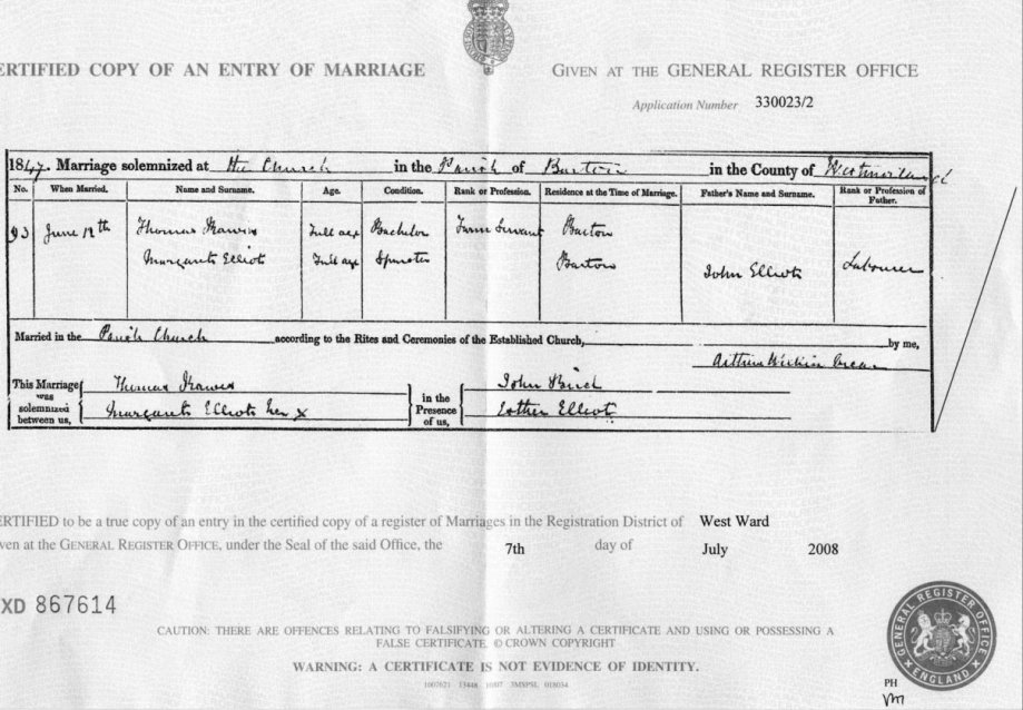 | Marriage | 1847 | Thomas Rawes & Margaret Elliot, Barton, Westmorland | Census | C00010 |