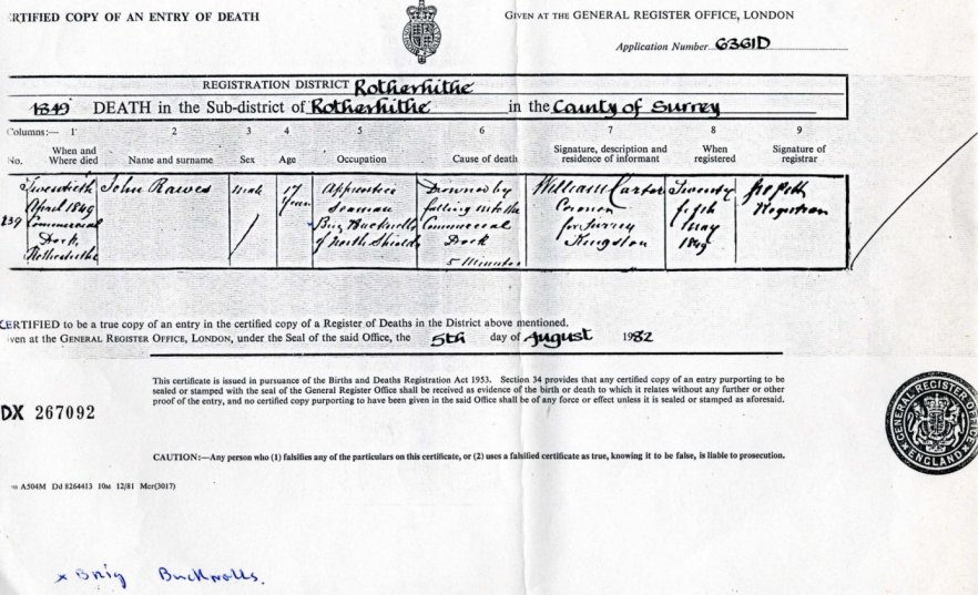 | Death | 1849 | John Rawes, Rotherhithe, Surrey | Neville | C00012 |