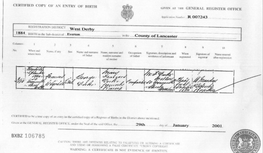 | Birth | 1884 | Frances Elizabeth Duke, Everton, Lancashire | Jamaica | C00052 |