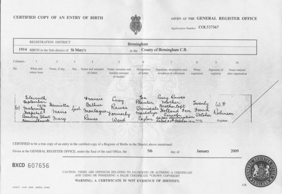| Birth | 1914 | Henrietta M M Rawes, Birmingham | Russell | C00079 |
