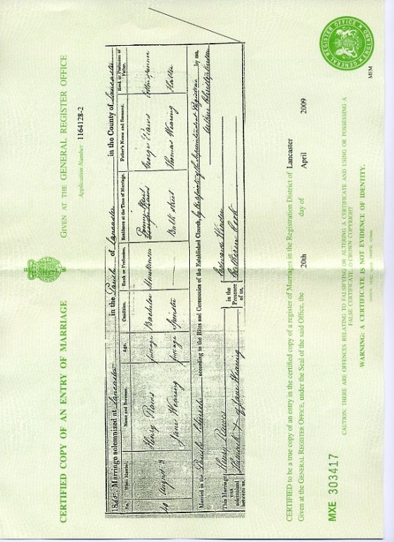 | Marriage | 1838 | Ann Rawes & James Toulmin, Lancaster, Lancs | Toulmin | C00002 |