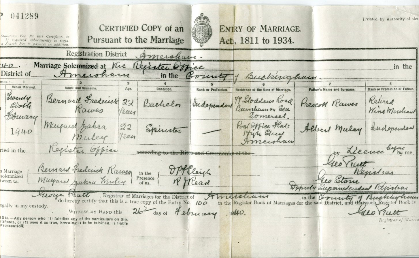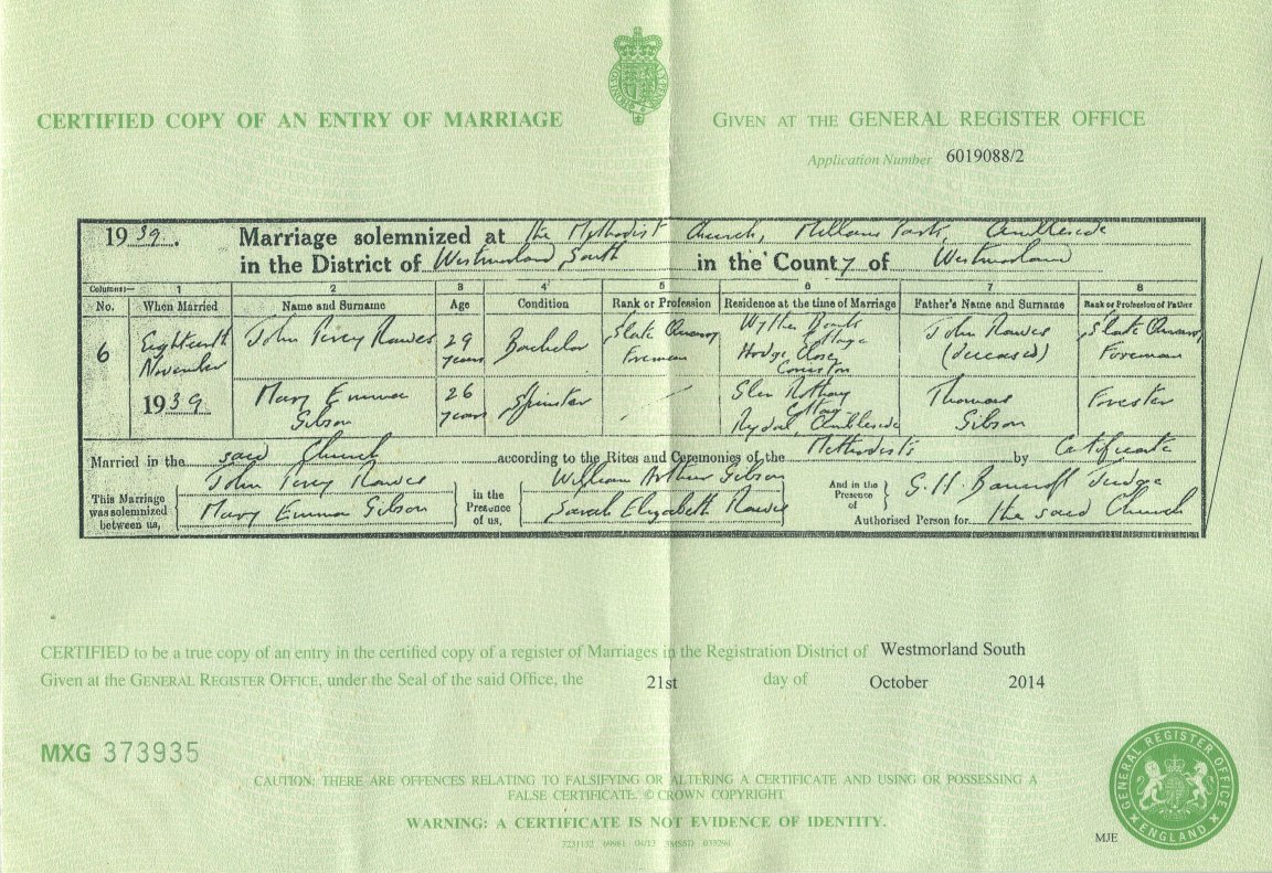 | Marriage | 1939 | John Percy Rawes of Ambleside | JP | C00099 |