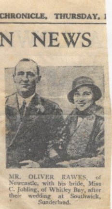 | Newspaper cutting relating to the wedding of Oliver Rawes & Christine