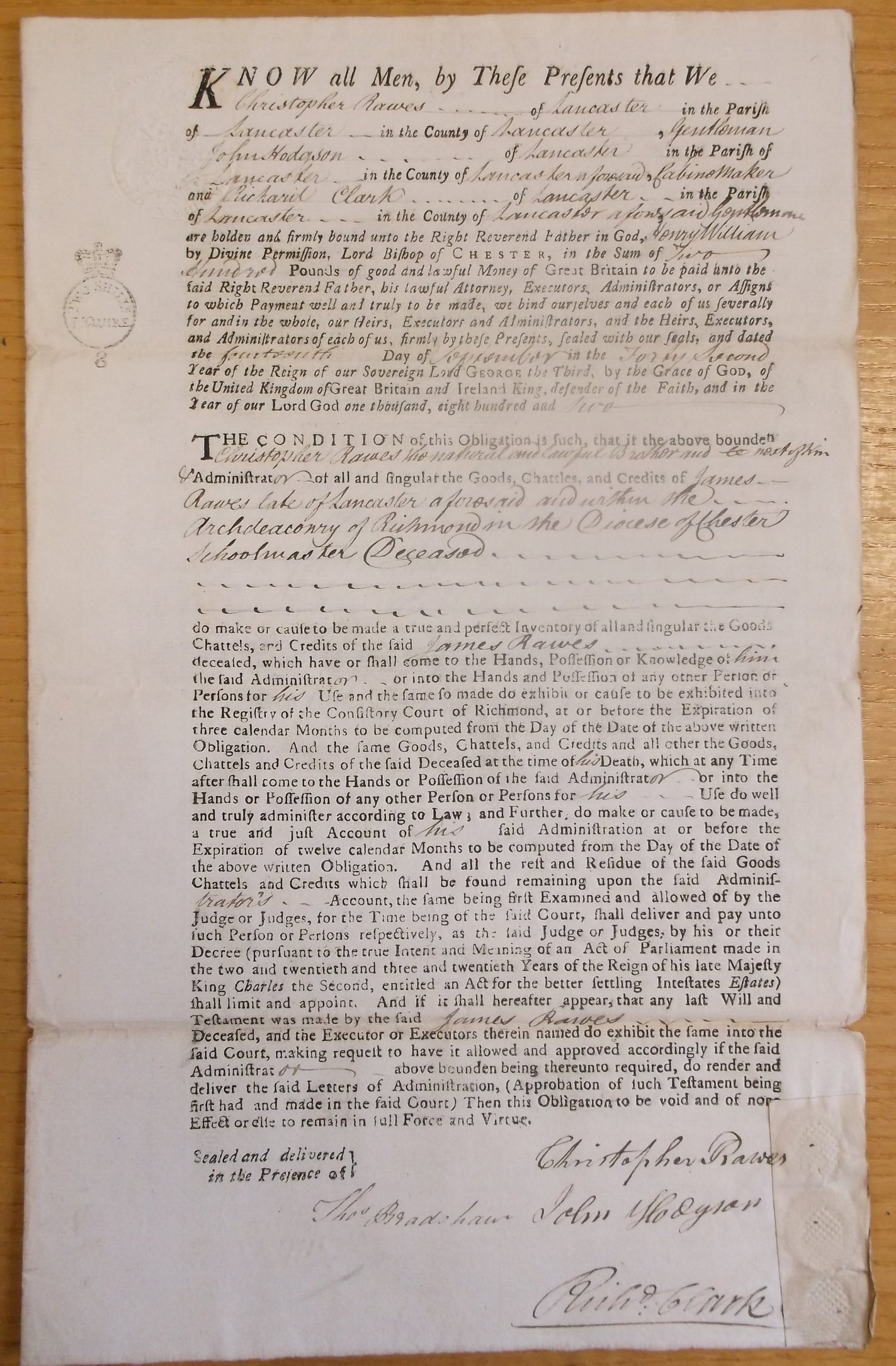 and Richard Clark of Lancaster in the Parish