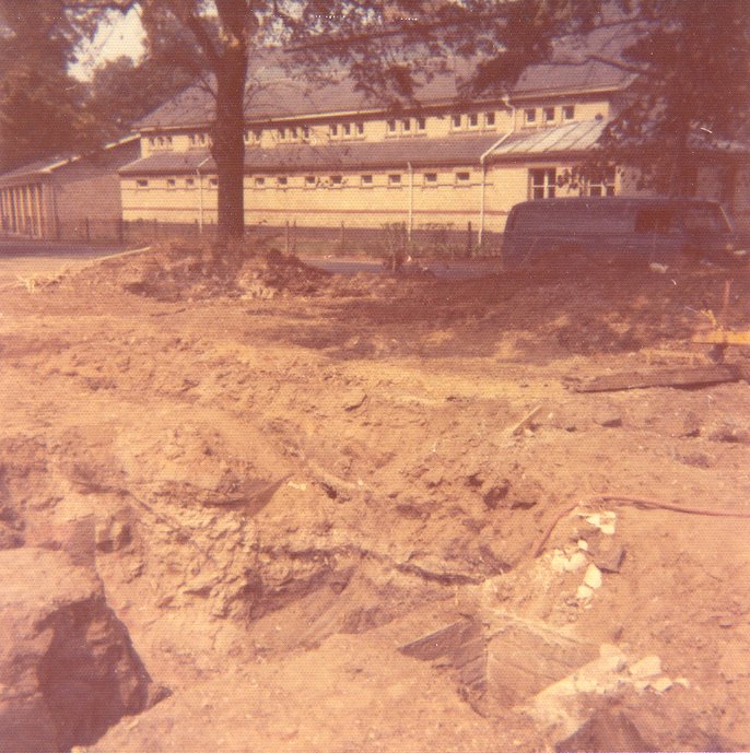 Archaeological material was intense in the north western and central area. Unfortunately the trenching in the extreme north western corner was completed and concrete laid before it was realised that the trenches had cut through the foundations of Sandford House, therefore virtually no information about it was obtained. Topsoil clearance only revealed masses of rubble that probably came from its 1830’s successor, Gothic Villa. In the western half, from approximately half way down the field, there was an increasing depth of superficial deposit until near College Baths Road. On the western half, the following sequence in a vertical section was observed, approximately 35cm topsoil, 40cm sand, 25cm silt, 15cm gravel, 6cm silt.
