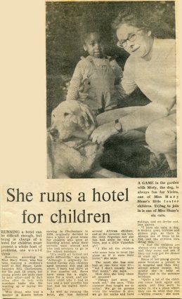 Later came Vivien, Genevieve and Oscar Ssentoogos from Uganda. Vivien was aged 14 months, she later went back to Uganda but returned to join Jeffrey and June. She became very good on Stoney's piano and now lives in London. Jeffrey stayed until he was 10 and then returned to Sierra Leone to live with his father. June was one of three sisters from Sierra Leone.
